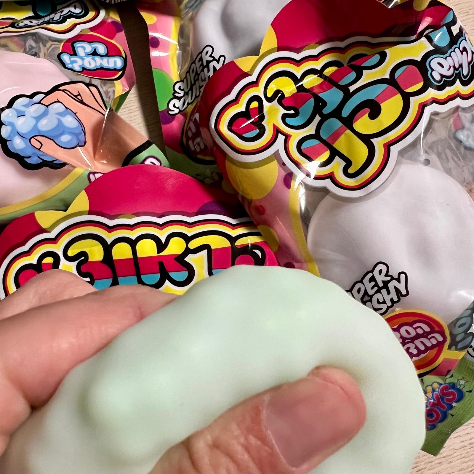 כדור לחיץ סטרס בול למעיכה קראנצ'י יפני. כדור רך ונעים למגע במילוי כדוריות קטנות וקשיחות שעושות אפקט של קראנצ'יות בזמן המשחק בידיים.